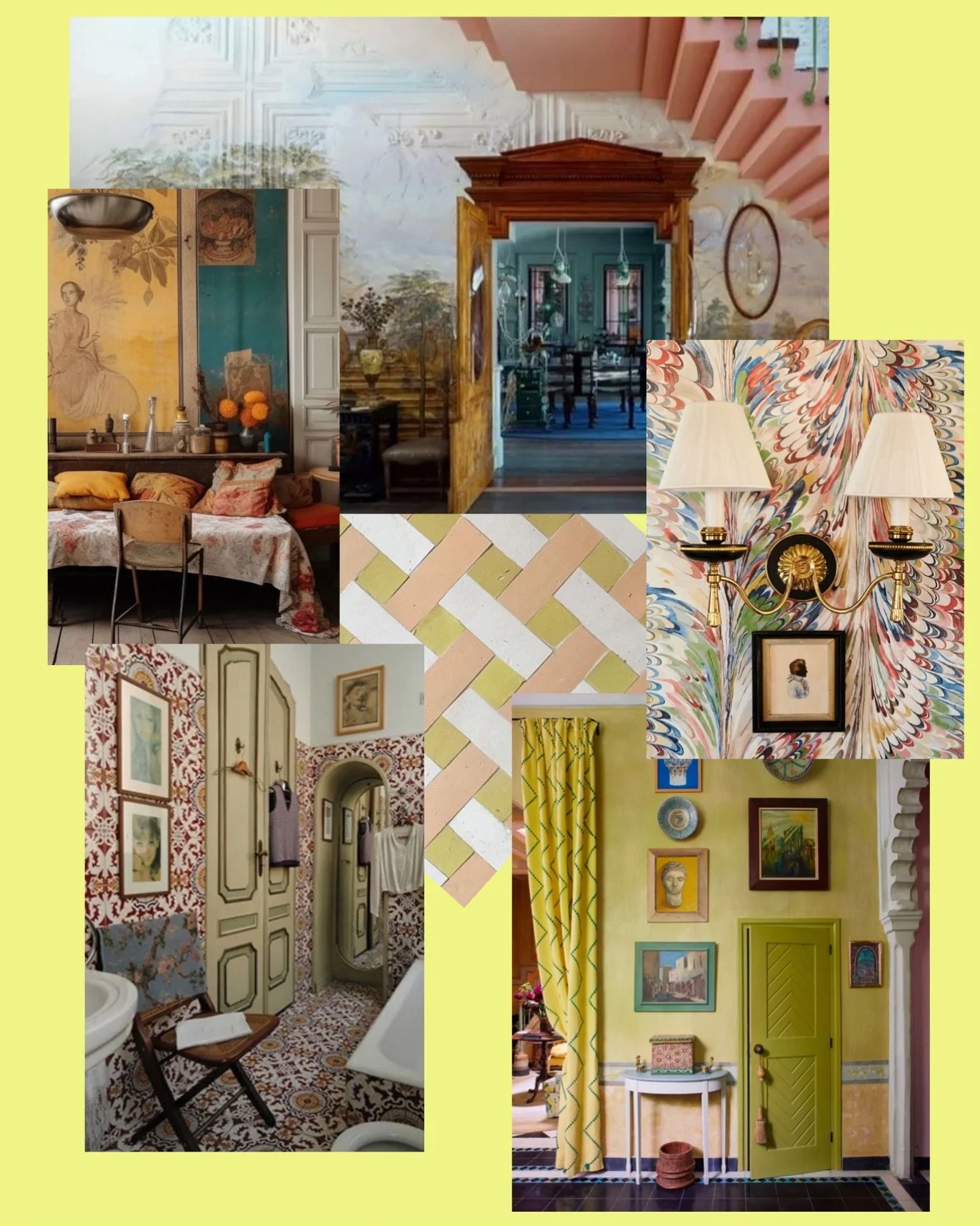 It’s not over, we have some more work to do. The next step for Big Pink is to lean into architectural flourish, details that feel ornate yet a little unexpected. Inspired by the delicacy of quilled patterns, carved window details, and the layered excess of porcelain, plants, art and textiles, the goal is to weave in surfaces that reward a closer look. These aren’t just embellishments, but invitations into Ophelia’s world, where even the smallest trim or panel carries its own story.